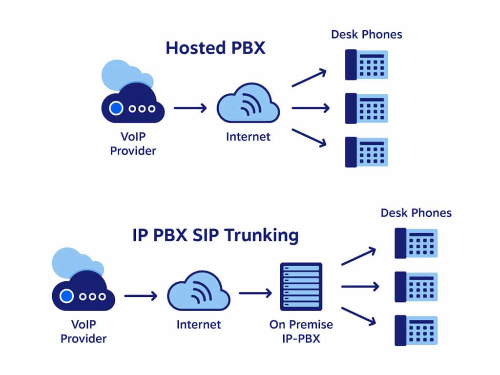 Un sistem PBX conectează liniile telefonice interne din cadrul unei companii și le leagă la rândul lor la rețeaua telefonică publică (PSTN). Una dintre cele mai noi tendințe în dezvoltarea sistemului de telefonie PBX este VoIP PBX, cunoscut și sub numele de IP PBX, care folosește protocolul Internet pentru a transmite apelurile.